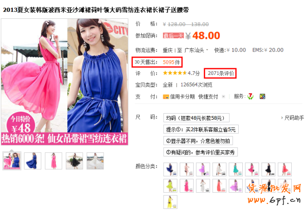 通過對去年行業數據的分析,結合四月份行業的走勢和賬戶的寶貝競爭力的分析,我們決定把目標放在具有競爭空間的雪紡連衣裙上。