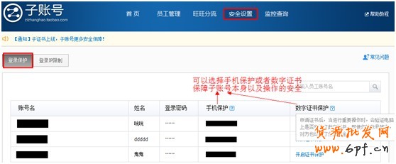 子賬號被盜了怎么辦?寶貝是否該員工本人操作刪除?設(shè)置子賬號安全保護(hù),輕松解決以上問題。如圖10,子賬號為您提供了手機(jī)保護(hù)和數(shù)字證書等多種安全保護(hù)措施。