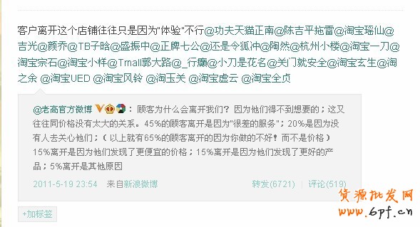 微博要想做好第一價值,第二定位:首先要提供價值,如果你是賣母嬰產品的不妨微博里多發布一些母嬰的知識,如果你是賣衣服的可以多教教別人如果搭配,或者適當提供一些優惠的商品,總之提供價值很重要,就算是講笑話也要博取粉絲一笑 也是價值。定位很重要,很多微博搞不清自己要什么,上來就亂發一通,很多網店也是這樣的,網店的微博有很多種定位,拿服裝來講,比如營銷定位-主要是新品發布,新品信息,客戶投訴建議與互動,還有就是興趣定位,主要針對客戶興趣,每天發布服飾搭配小常識,最新流行趨勢等等