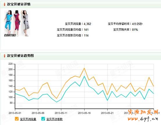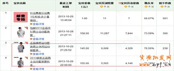 該寶貝流量雖然偏低,但是寶貝的跳失率相對兩款主推寶貝較低,訪客停留時間也是比較長的,所以將該款寶貝重點選取為秋款預(yù)熱寶貝。