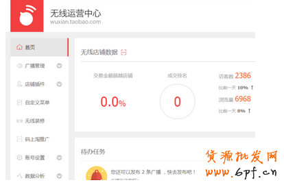 以下是新版無線運營中心的界面,首頁由“無線店鋪以及待辦任務“構成。