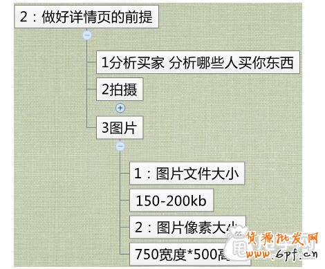 淘寶曾經提出意見說圖片的像素高度盡量要在800,但是可以發現,很多的顯示器它們的像素調整在800里面根本沒辦法一屏幕看完整個圖片,這對視覺的影響是非常大的。同樣的,像我們的細節圖片盡量也是一屏幕里能看得清晰,這對于瀏覽的體驗是非常重要的,這個就是我們在做詳情頁之前對圖片的處理。 總結一下這個做好詳情頁的第三點——圖片,如下圖: