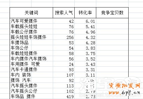 2.列出每個關鍵詞的 搜索人氣 轉化率 競爭寶貝數 搜索排名