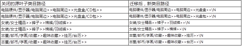 3)部分葉子類目關閉,且系統可以遷移原葉子類目下商品: