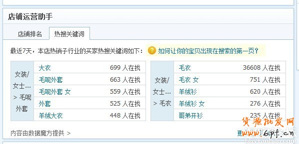 店鋪運營助手,可以看到關鍵詞,因為我這個店以前放的是毛衣 所以顯示了毛衣的關鍵詞。