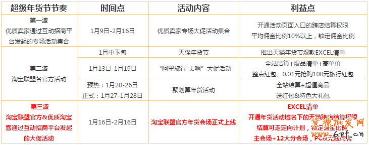 (圖:淘寶聯盟官方對外發布的超級年貨節活動節奏)