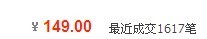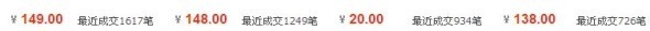 這里我走的是低價策略,幾近零利潤的銷售。這里我自己的想法是盡管利潤低,但圖的是人氣,利用人氣希望能待到店內(nèi)其他寶貝的銷售。如下圖所示:淘上最的最多的,賣149元,最近銷售1617。我只賣88元,不包郵(這是別家的)