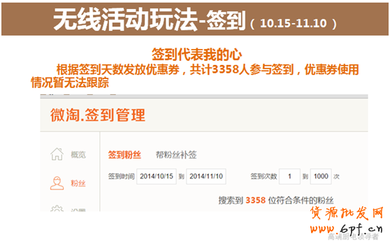 最后是無線活動玩法,設置了簽到、優惠券和游戲的方式。增強店鋪的粉絲粘性,提高了客單價同時趣味性也很強。