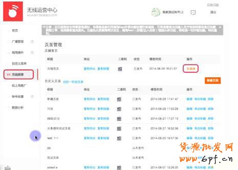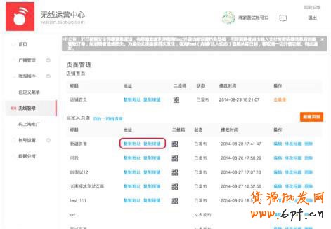 1、點擊“無線裝修-頁面管理-自定義頁面-新建頁面”,新建活動頁面;