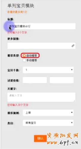 選擇自動推薦的話,根據價格區間關鍵詞、排序規則(上新、銷量、價格)、寶貝類目等自動添加寶貝;