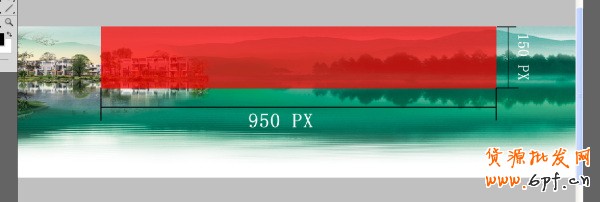 2、然后新建一個(gè)圖層,畫一個(gè)950PX*150PX的矩形!并靠頂部居中!