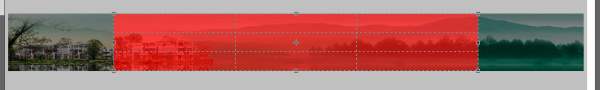 4、裁剪好的圖片尺寸是1500*150的,然后將那塊紅色的矩形隱藏(不要?jiǎng)h除,后面還有用),保存圖片就得到了下面這個(gè)圖片,你將它命名為2