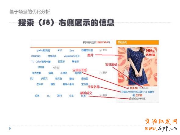 寶貝展現的信息:主圖、寶貝名稱、原價、折扣價、成交筆數。