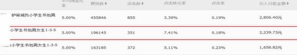 如案例中,所示,寶貝2中,點擊轉化率在7.41%,點擊率為0.18%,在寶貝中表現最優異,可以考慮進行著重投放!
