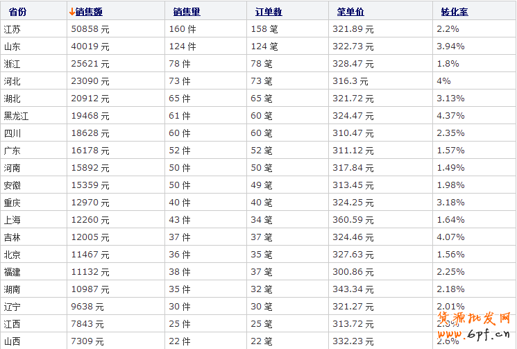 參考生意經分析店鋪的數據,得知下面地域是店鋪銷售最好的地區,轉化好,說明這些地區買家對羽絨服的需求和喜歡度較高。