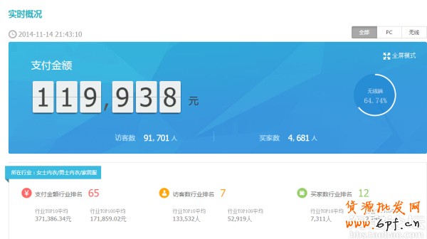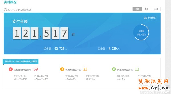 晚上10點10分 活動已經結束 成交金額已經突破12萬 訪客93728人 支付金額行業排名69 成功進入100強 買家數排名行業排名12