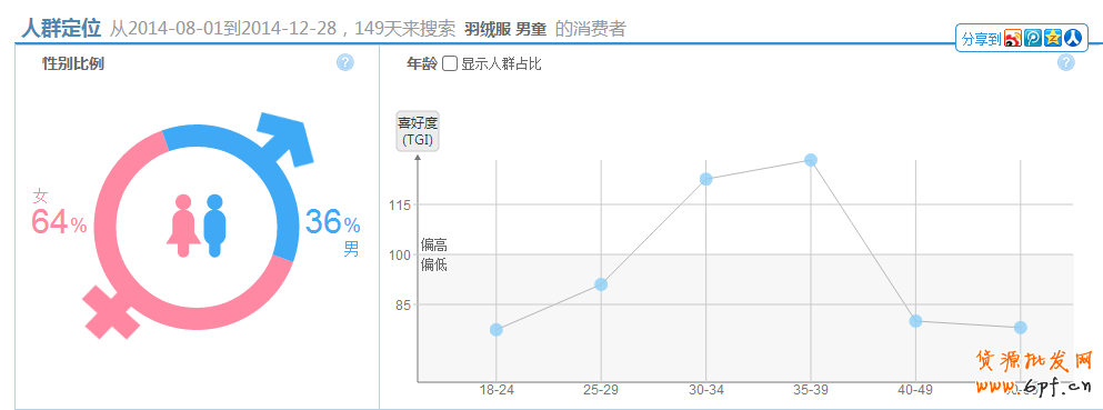 根據淘寶指數的人群定位數據反饋,我們在寶貝人群搜索設置了以下的數據指標。
