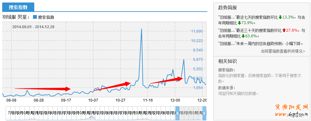 我們這個賬戶是一個童裝類目,它的二級類目是羽絨服/羽絨服內膽。那么行業的趨勢是如何的呢?
