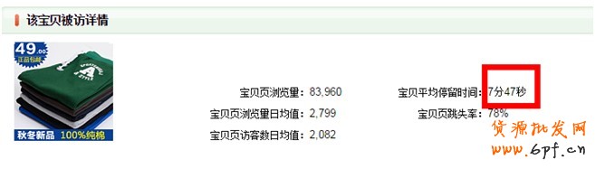 通過上面的數(shù)據(jù)可以看出,該寶貝的平均停留時間為7分鐘,并且跳失率低,說明產(chǎn)品的詳情頁還是比較符合買家喜好的。