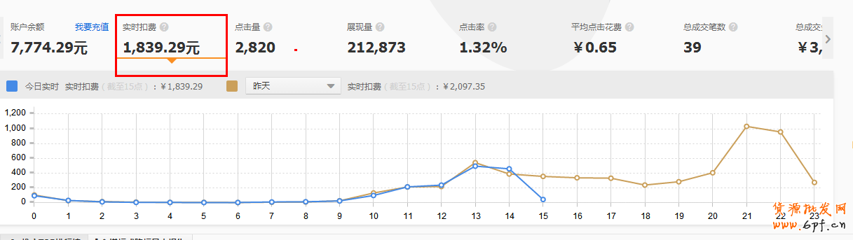 現在北京時間15:19分,按照店鋪預算7000來花費,現在這時間點應該花費2000多到3000。實際扣費才1839,還差1000塊錢的花費。
