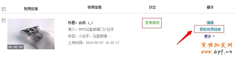 視頻發布成功后,點擊【復制視頻鏈接】復制視頻的FLASH代碼,然后把視頻FLASH代碼加入到免費添加視頻的代碼當中,如圖: