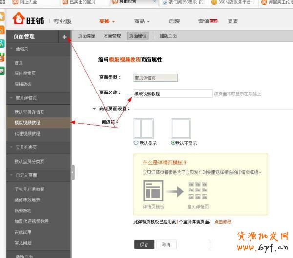 1、新建一個(gè)詳情頁面在店鋪的裝修頁面;