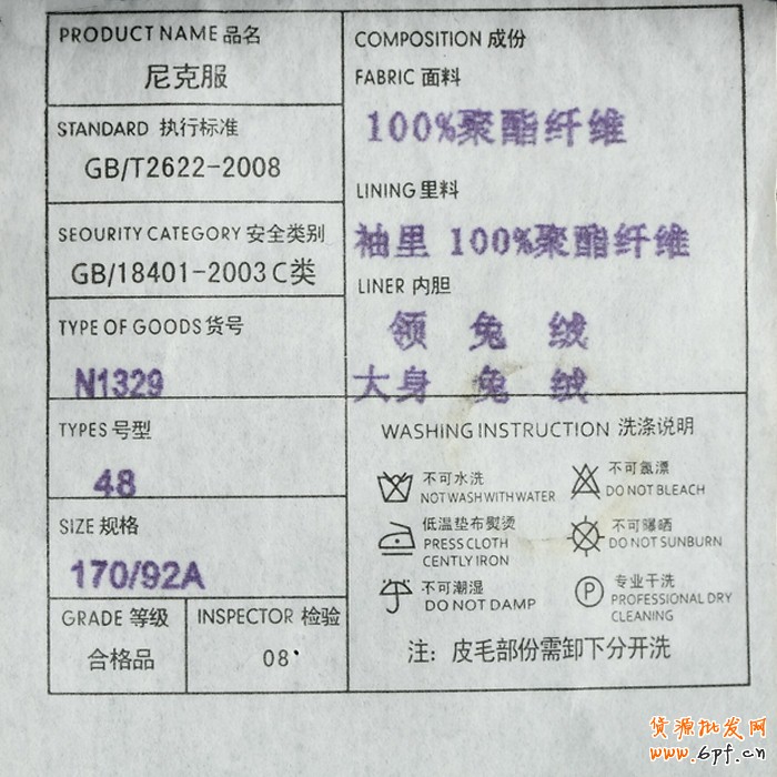 注:吊牌實拍圖示例:
