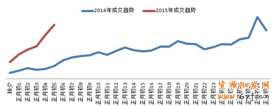 而2015年比2014年成交回升熱度更快、更兇猛,在正月初三就已經(jīng)強(qiáng)勢(shì)復(fù)蘇!說明2015年的買家無線購買需求又加強(qiáng)了!
