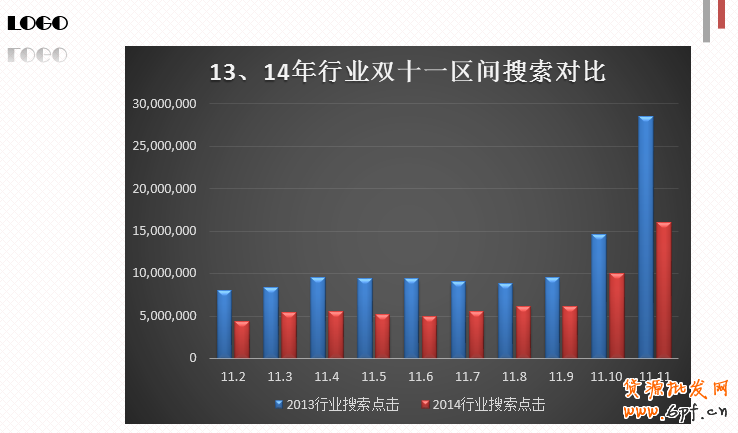 總的來說,要是根據(jù)行業(yè)的數(shù)據(jù)分析,14年雙11區(qū)間流量只能達到15萬4682的流量左右,但是在短短的5天時間內(nèi)增加了將近4萬多近4萬的搜索量,第一波的優(yōu)化平均每天增長達到8000多搜索流量。