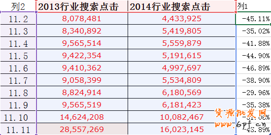 14年行業(yè)與13年行業(yè)搜索相差40~50%,按照這組數(shù)據(jù),14年雙11最多完成了15萬的搜索,而實際上,14年雙11期間我們完成了20多萬的搜索數(shù)據(jù),這是怎么來的呢?