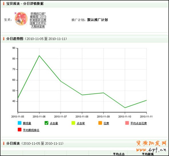 在“分日報表”中,您可以根據選定的日期按小時查看直通車的推廣數據。
