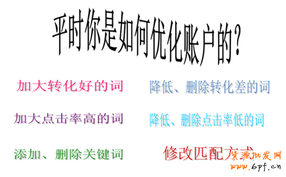 1、添加精準(zhǔn)詞——前期盡量不要泛詞,只添加精準(zhǔn)關(guān)鍵詞,主要的操作思路是考慮賬戶數(shù)據(jù)持續(xù)上升,規(guī)避前期較低的數(shù)據(jù)指標(biāo)對后期上升慢的影響(對點擊率和轉(zhuǎn)化都有很大的影響);