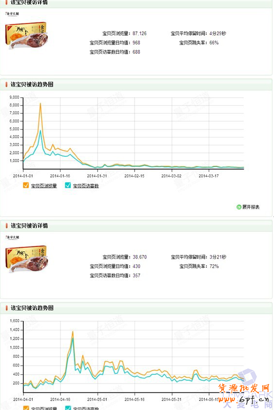 從上述三張圖中可以明顯看到主推寶貝在三個季度里的流量變化,以過年前后為峰值,兩端明顯降低,過年達到單日8000流量的峰值,而其余時間以400為均值上下波動。所以銷售淡旺季明顯也就很正常。