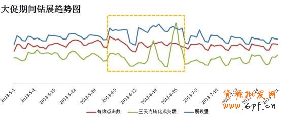 一、2013大促期間鉆展&直通車(chē)成交趨勢(shì):