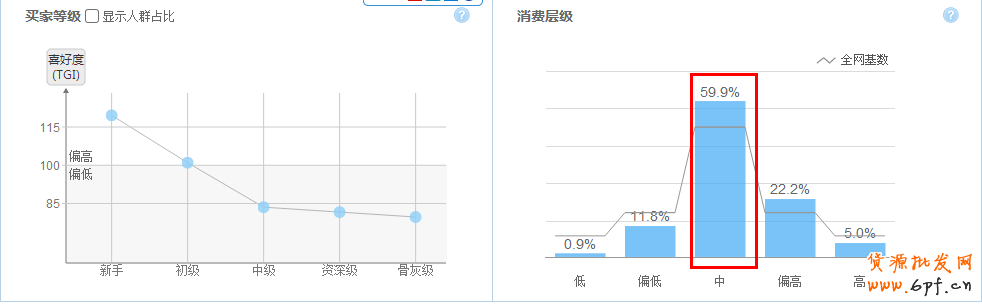 根據淘寶指數數據的反饋,可以看到童裝類目男女性別占比上,女性占比稍微大一些,消費層級也多數集中在中級買家上,買家年齡多數集中在30~39歲之間,因此,我們可以在男女人群中同時推廣測試,在女性群眾的推廣力度上可以稍微大一些。