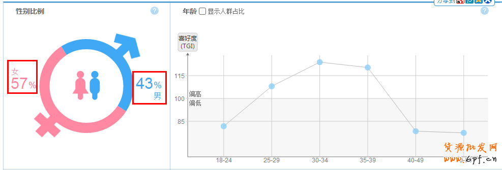 根據行業和店鋪訪客分析,發過克女性成交雖然占比比較大,但是男女性占比相差是不大的,我們可以針對這個特點對寶貝進行自定義人群投放推廣,經過測試后的結果就是女性轉化的情況高于男性,這也說明了該類目的主要消費群體是女性。