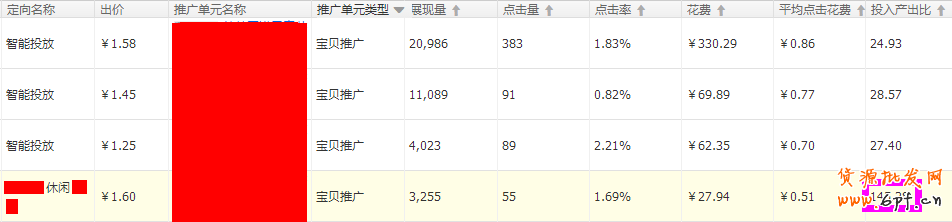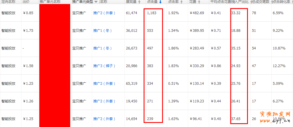 不同的寶貝測試后的效果不同,一款流量較低,雖然PPC也相對較低,但是其他數據都不好;一款流量和轉化情況都是相對比較好的,轉化好的寶貝該定向就會根據數據反饋定期做調整,數據較差的則繼續低價培養一段時間,后期根據數據的反饋情況來做好調整。