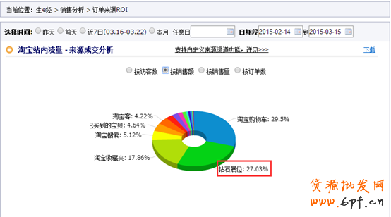 通過流量趨勢圖,從2月24號開始,店鋪流量逐漸攀升。2/14~3/15,鉆展占到店鋪整體流量的71%左右,由于春節的關系正月初八店鋪才恢復上新。