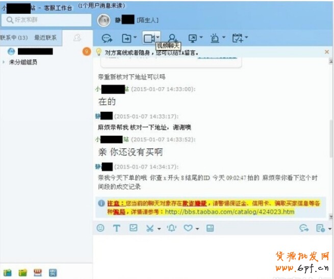 1、騙子利用店鋪成交記錄中的信息,得知買家在店鋪中的購買情況之后,就會聯(lián)系客服說自己的買家的朋友,需要修改/核實收貨地址。