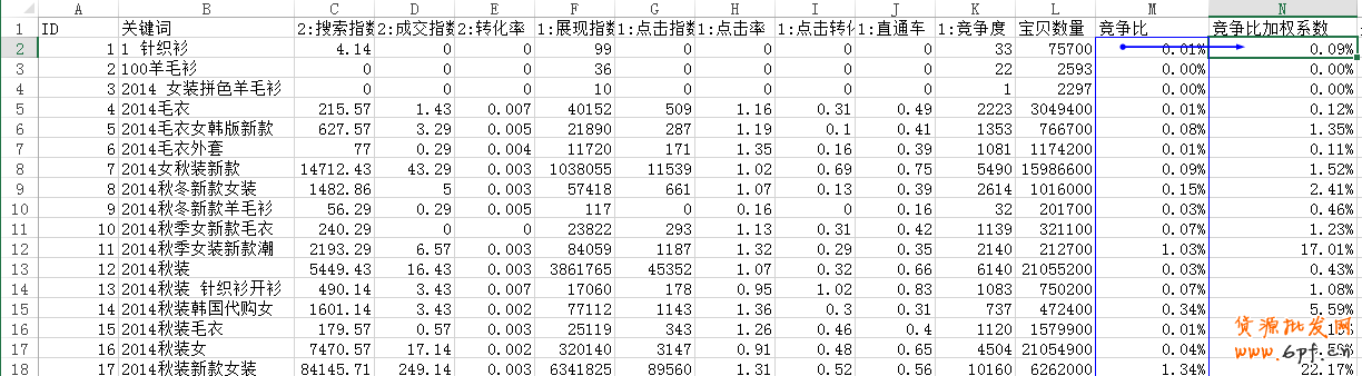 算出競爭比,競爭比=搜索指數(shù)/寶貝數(shù)量