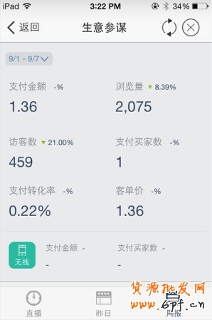 包括實時直播和店鋪概況,實時數據能進行PC端和無線端數據單獨解讀,讓您能更全面的看數據。
