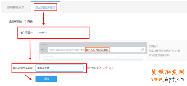 可以添加商品詳情頁,通過輸入商品ID->按照自己的意愿命名頁面->點(diǎn)擊添加,即可完成;