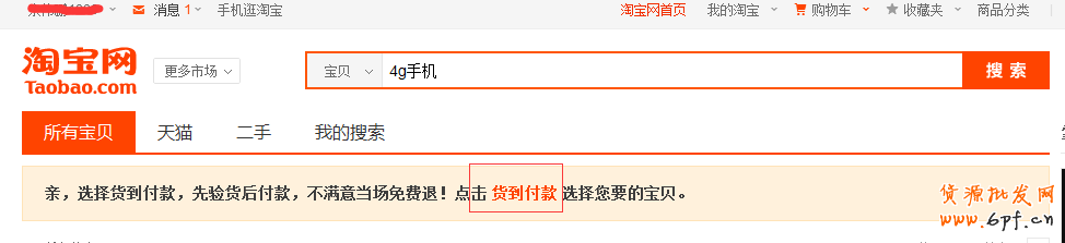 最近只要登錄了淘寶賬號,那么在淘寶搜索關鍵詞就會出現一行系統提示,引導用戶點擊貨到付款功能。