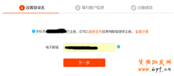 我們進(jìn)入淘寶網(wǎng)看見左上角的“免費(fèi)注冊”,點(diǎn)擊進(jìn)去填寫手機(jī)號(hào)碼和驗(yàn)證碼,最后點(diǎn)擊下一步。