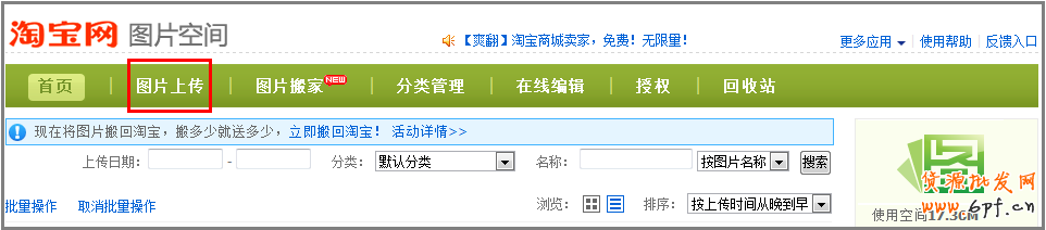第一步:先進入淘寶官方圖片空間 (tu.taobao.com),點擊“圖片上傳”(如下圖)