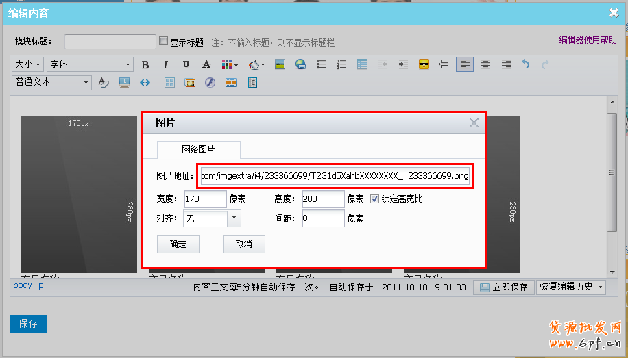 第三步:點擊第一張280*170的圖片模板,便會彈出“圖片網(wǎng)址”編輯器,再點擊“編輯”按鈕。