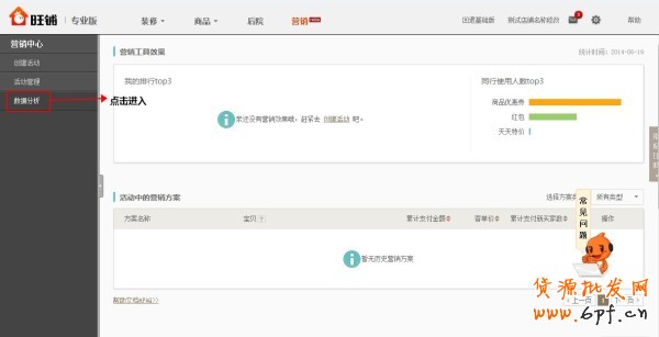 描述:現階段營銷中心活動數據效果披露,一期數據包括紅包、優惠券、天天特價,二期數據包括淘金幣簽到、淘金幣抵錢、店鋪試用、投票、買家秀