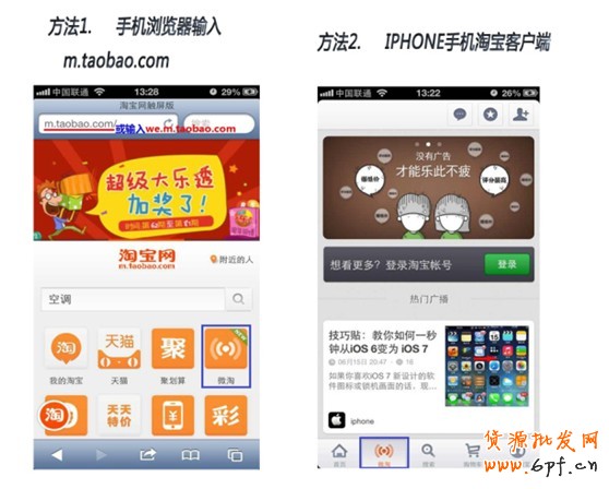 第一步、進入微淘(微淘是淘寶在手機客戶端推出的供買家賣家使用的產品。):