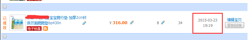 再來看看一個新規則的變化,2015年3月29日開始就有賣家反映現在編輯寶貝詳情頁或者寶貝首圖后寶貝上下架就會進行重置,為求證,有賣家測試了一下,編輯了一款寶貝的詳情頁。
