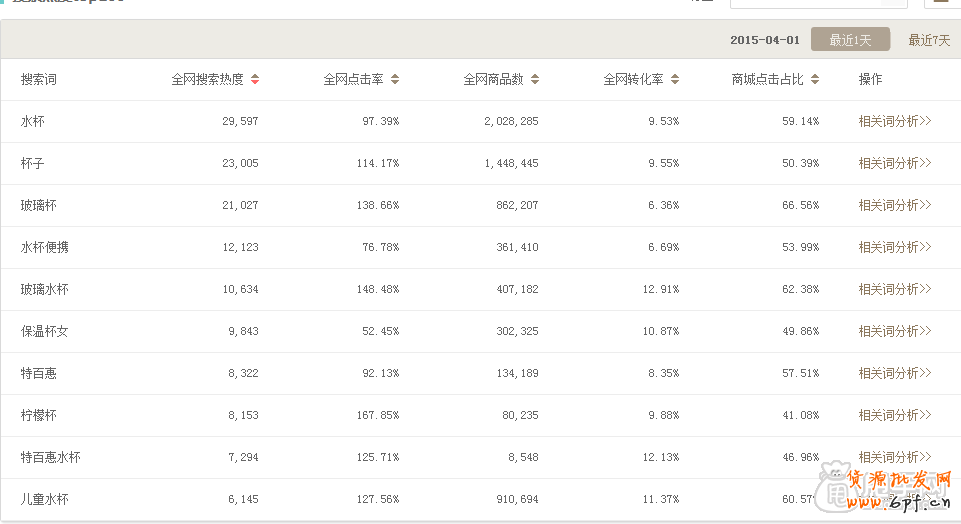 這個基本上能夠看出哪些關鍵字的流量的一些增長狀況,在我們做標題的時候,結合這些數據和淘寶指數里面的數據,就可以非常輕松的找到我們需要的潛力詞。